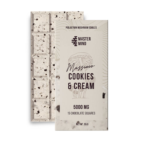 Ingesting Psilocybin Mushrooms has never tasted so good. The Mastermind 5000mg Cookies & Cream Bar provides an easy, consistent, reliable and tasty way to ingest your Magic Mushrooms. These bars contain 5000mg of our premium Psilocybe Cubensis blend and is distributed evenly in 15 x 333mg square. Whether you are looking to go on a magical journey, or microdose daily, the 5000mg Cookies & Cream Bar is a favorite amongst all!
